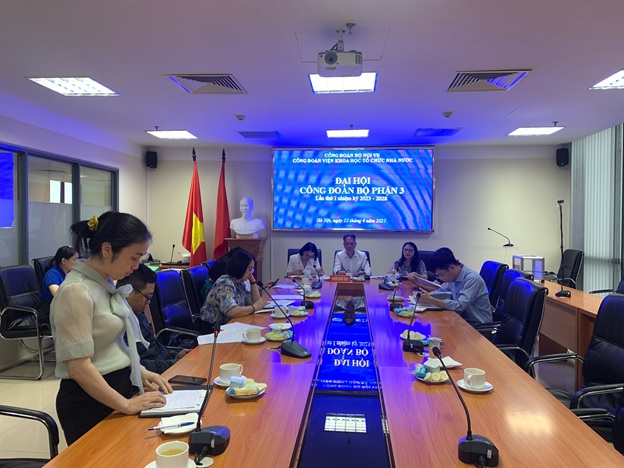 Ngày 25/4/2023 tại Viện Khoa học tổ chức nhà nước, Công đoàn Bộ phận 3, Viện Khoa học tổ chức nhà nước tổ chức Đại hội lần thứ I nhiệm kỳ 2023 – 2028 nhằm đánh giá kết quả hoạt động nhiệm kỳ 2016 – 2022 và bầu Ban Chấp hành Công đoàn Bộ phận 3 nhiệm kỳ 2023 – 2028.