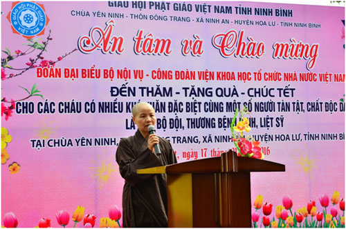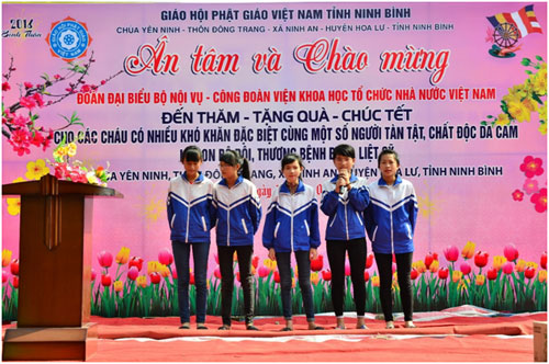 Tại buổi gặp mặt ở chùa Yên Ninh, có sự tham dự của ông Trần Văn Ngợi - Bí thư Đảng ủy, Viện trưởng Viện Khoa học tổ chức nhà nước; ông Chu Tuấn Tú - Chủ tịch Công đoàn Viện; ông Trần Văn Khánh - Bí thư Đoàn Thanh niên cùng một số viên chức của Viện Khoa học tổ chức nhà nước. Đoàn đã được Sư thầy Thích Diệu Nhân – Trụ trì Chùa; ông Nguyễn Mạnh Hùng – Chủ tịch UBND xã Ninh An cùng toàn thể các cháu được nhà Chùa nuôi dưỡng, đỡ đầu đón tiếp với chương trình văn nghệ do các cháu tự biểu diễn đầy ý nghĩa và hết sức cảm động. Tại đây, Công đoàn Viện đã tổ chức trao tặng quần áo mới, đồ dùng học tập, bánh kẹo, sữa, lương thực phẩm thiết yếu (trị giá gần 20.000.000 đ) cho các cháu được nhà Chùa trực tiếp nuôi dưỡng, đỡ đầu; ngoài ra, Đoàn cũng trao tặng 17 suất quà (500.000 đ/suất) cho các cháu bị nhiễm chất độc da cam là con của bộ đội, thương binh, bệnh binh, liệt sỹ của xã Ninh An; trao tặng 5 suất quà (3.000.000 đ/suất) cho các cháu có hoàn cảnh gia đình hết sức khó khăn đang học cao đẳng, đại học được nhà Chùa đỡ đầu.