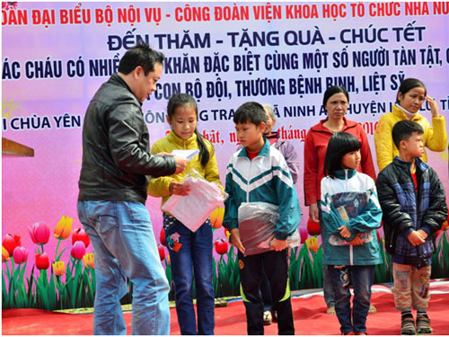 Sáng ngày 17/01/2016, Công đoàn và Đoàn Thanh niên Viện Khoa học tổ chức nhà nước đã tổ chức chuyến thăm và tặng quà cho các cháu mồ côi, tật nguyền có hoàn cảnh khó khăn, bị nhiễm chất độc da cam là con thương binh, bệnh binh, liệt sỹ đang được nuôi dưỡng và đỡ đầu tại Chùa Yên Ninh, thôn Đông Trang, xã Ninh An, huyện Hoa Lư, tỉnh Ninh Bình.