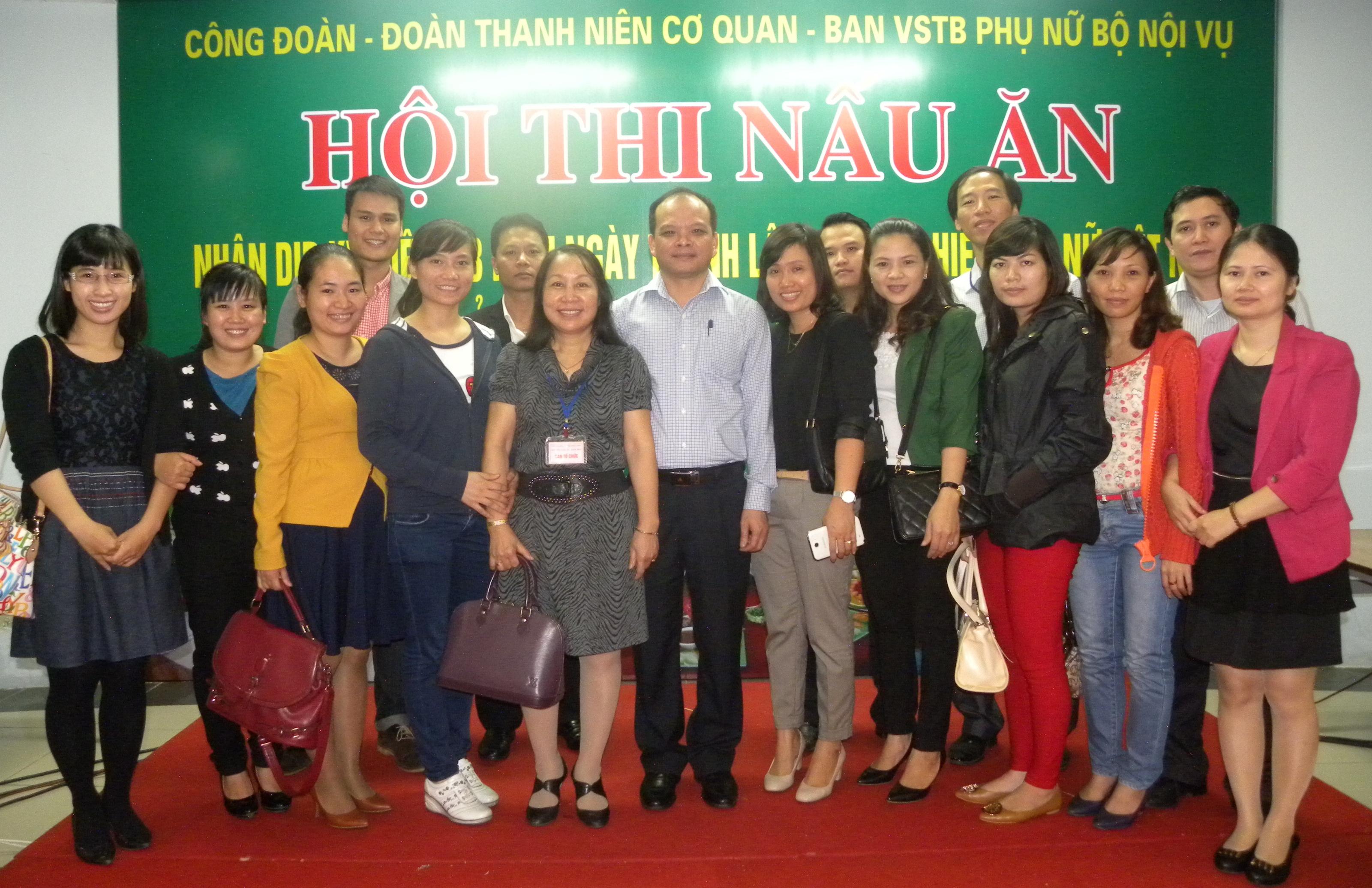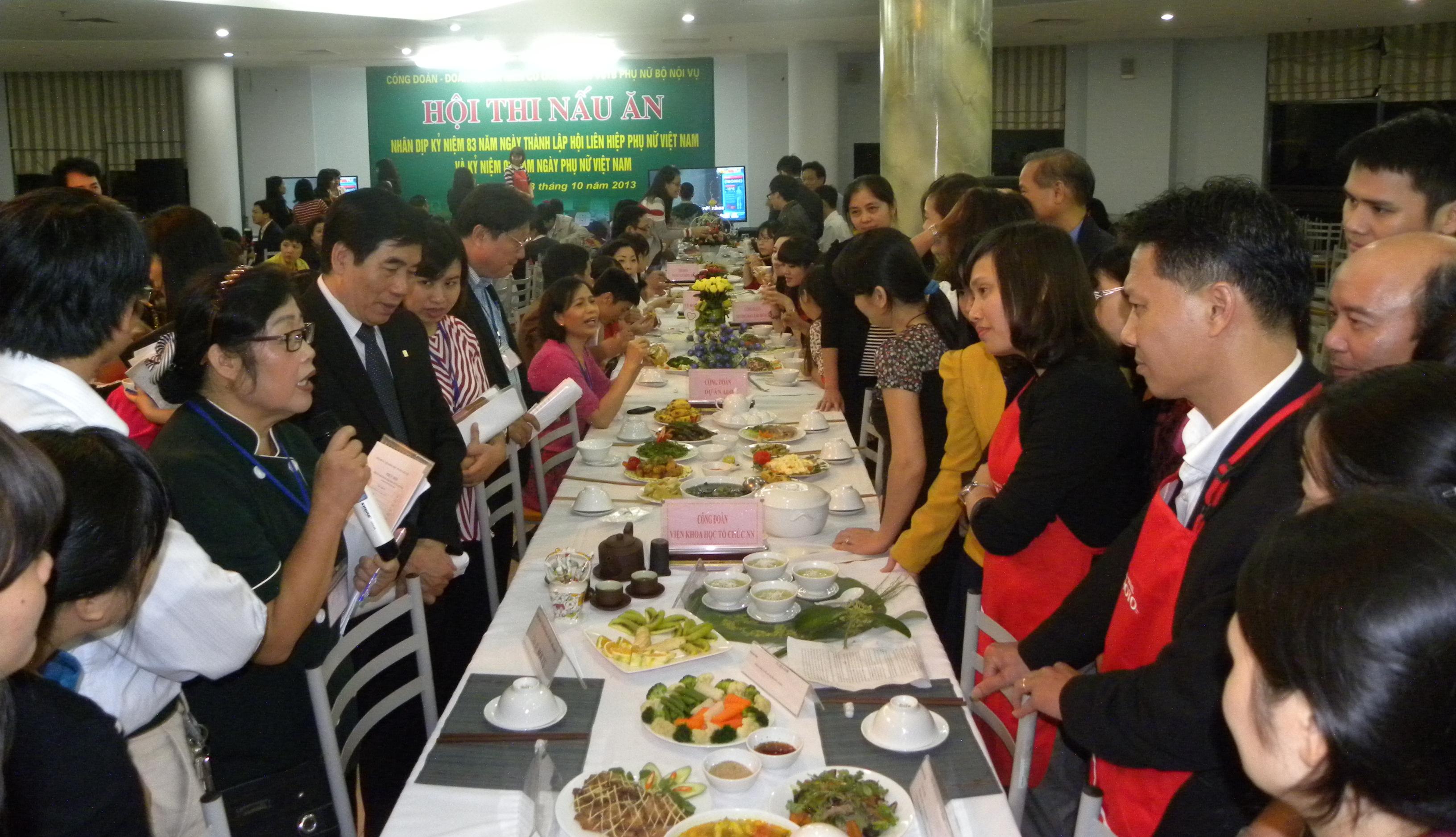 Chào mừng kỷ niệm 83 năm Ngày thành lập Hội Liên hiệp Phụ nữ Việt Nam (20/10/1930 - 20/10/2013) và kỷ niệm 03 năm Ngày phụ nữ Việt Nam (20/10/2011 - 20/10/2013), hưởng ứng Năm Gia đình Việt Nam năm 2013, chiều ngày 18/10/2013, tại trụ sở Bộ, Công đoàn - Đoàn thanh niên cơ quan Bộ phối hợp với Ban Vì sự tiến bộ Phụ nữ Bộ Nội vụ tổ chức Hội thi nấu ăn nhân kỷ niệm ngày Phụ nữ Việt Nam 20/10/2013 (Hội thi)