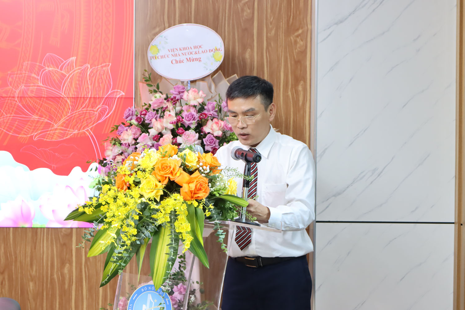 Đồng chí Lê Ngự Bình - Bí thư Chi bộ 1 nhiệm kỳ 2023-2025, Phó Viện trưởng Viện KHTCNN&LĐ phát biểu khai mạc Đại hội