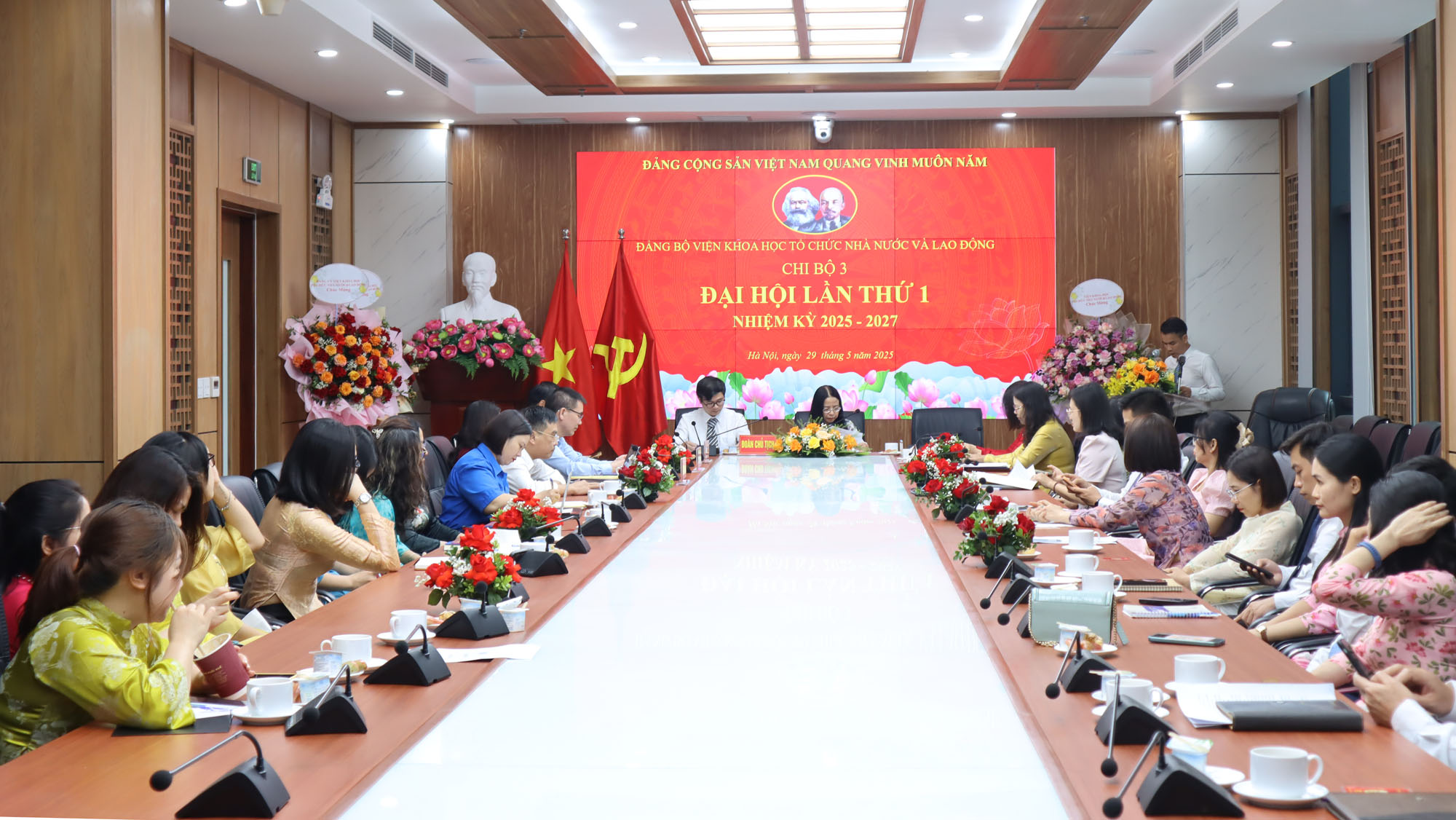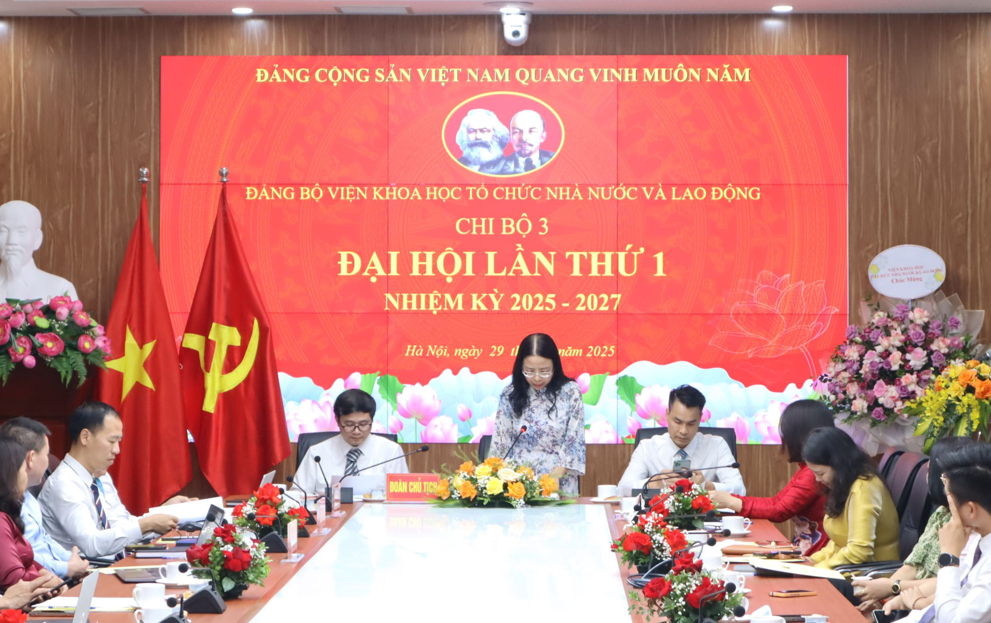 Phát biểu khai mạc Đại hội Chi bộ 3 nhiệm kỳ 2025–2027, đồng chí Trịnh Thu Nga, Bí thư Chi bộ 3, Phó Viện trưởng Viện Khoa học Tổ chức nhà nước và Lao động (Viện KHTCNN&LĐ), đã nhấn mạnh rằng trong nhiệm kỳ 2020–2025, dưới sự lãnh đạo, chỉ đạo trực tiếp của Đảng ủy Viện KHTCNN&LĐ, cùng với việc quán triệt và thực hiện nghiêm túc các nghị quyết của Đảng, Chi bộ 3 đã phát huy hiệu quả tinh thần đoàn kết, dân chủ và trách nhiệm cao. Tập thể đảng viên trong Chi bộ đã không ngừng thi đua, nỗ lực phấn đấu, góp phần quan trọng vào việc hoàn thành toàn diện các nhiệm vụ chính trị, chuyên môn, nghiên cứu khoa học, đồng thời xây dựng tổ chức đảng trong sạch, vững mạnh.