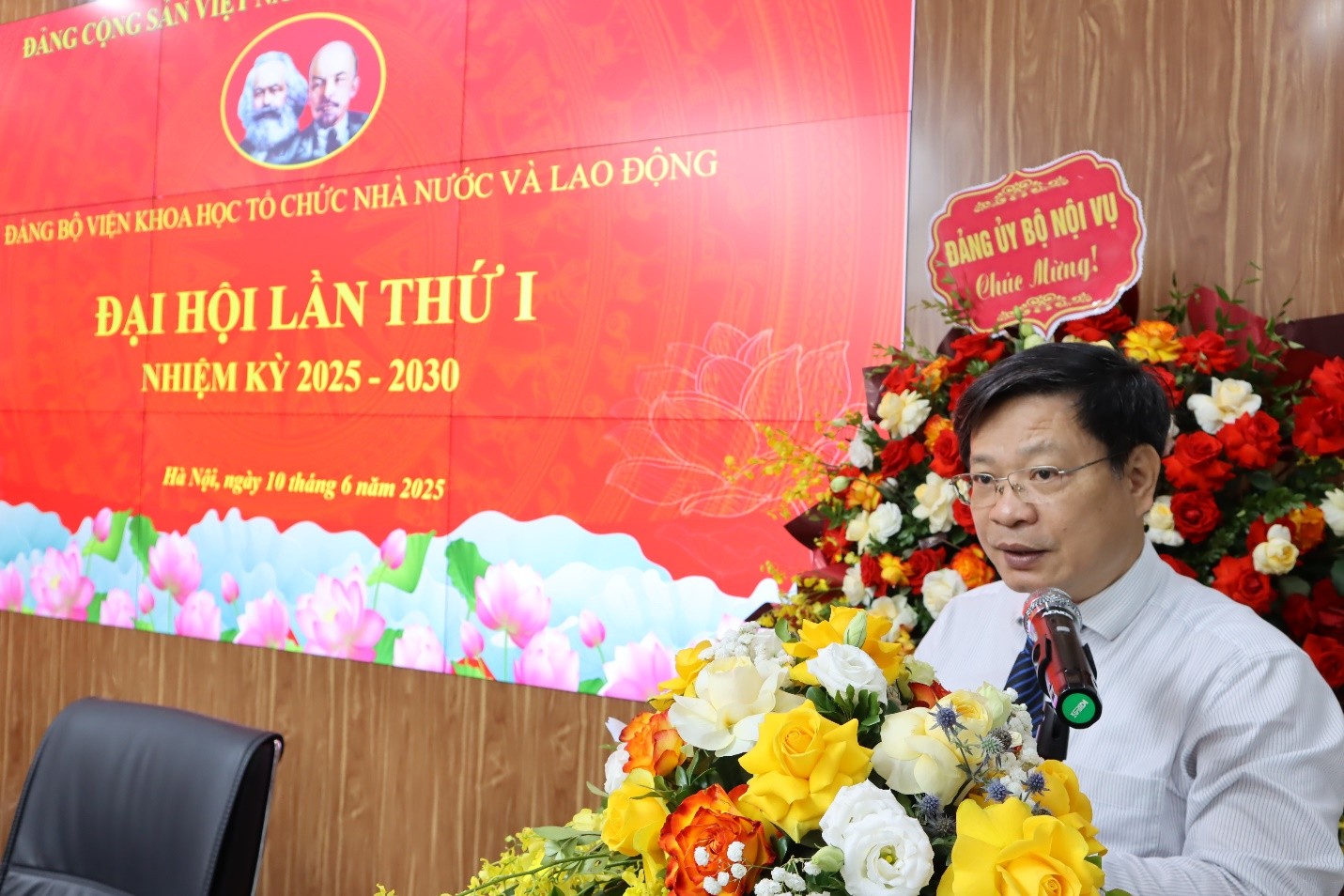 Sáng ngày 10/6/2025, tại trụ sở Bộ Nội vụ, số 37 Nguyễn Bỉnh Khiêm, Hà Nội, Đảng bộ Viện Khoa học Tổ chức Nhà nước và Lao động (Viện KHTCNN&LĐ) đã tổ chức trọng thể Đại hội lần thứ I, nhiệm kỳ 2025 – 2030. Đồng chí Nguyễn Văn Hồi - Ủy viên Ban Thường vụ Đảng ủy Bộ, Thứ trưởng Bộ Nội vụ đến dự và chỉ đạo Đại hội.