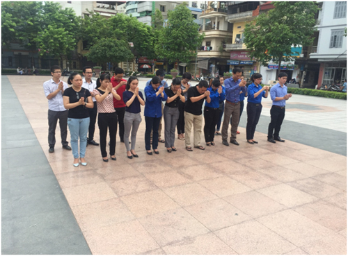 Tham gia đoàn dâng hương có các đồng chí Trần Văn Khánh, Bí thư Đoàn Thanh niên Viện, đồng chí Hồ Trần Sỹ, Ủy viên Ban chấp hành Công đoàn Viện, đồng chí Vũ Hồng Hạnh, Phó Bí thư Đoàn phường Tương Mai và các đoàn viên ưu tú của Đoàn thanh niên Viện Khoa học tổ chức nhà nước.