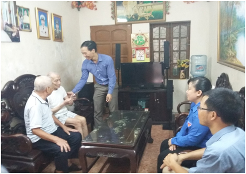 Sau buổi lễ dâng hương, Đoàn đã đến thăm và tặng quà cho một số đối tượng chính sách là thương binh nặng, gia đình liệt sỹ có hoàn cảnh hết sức khó khăn tại phường Tương Mai, quận Hoàng Mai, thành phố Hà Nội. Các thành viên trong Đoàn đã chia sẻ tình cảm và lòng biết ơn chân thành tới những công lao đóng góp, hy sinh mất mát của các thế hệ cha anh đã phải gánh chịu để có được tự do, độc lập ngày hôm nay.