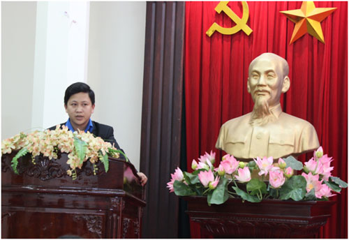 Đồng chí Bùi Văn Hà – Bí thư Đoàn thanh niên Trường ĐTBDCBCC phát biểu tại buổi nói chuyện chuyên đề