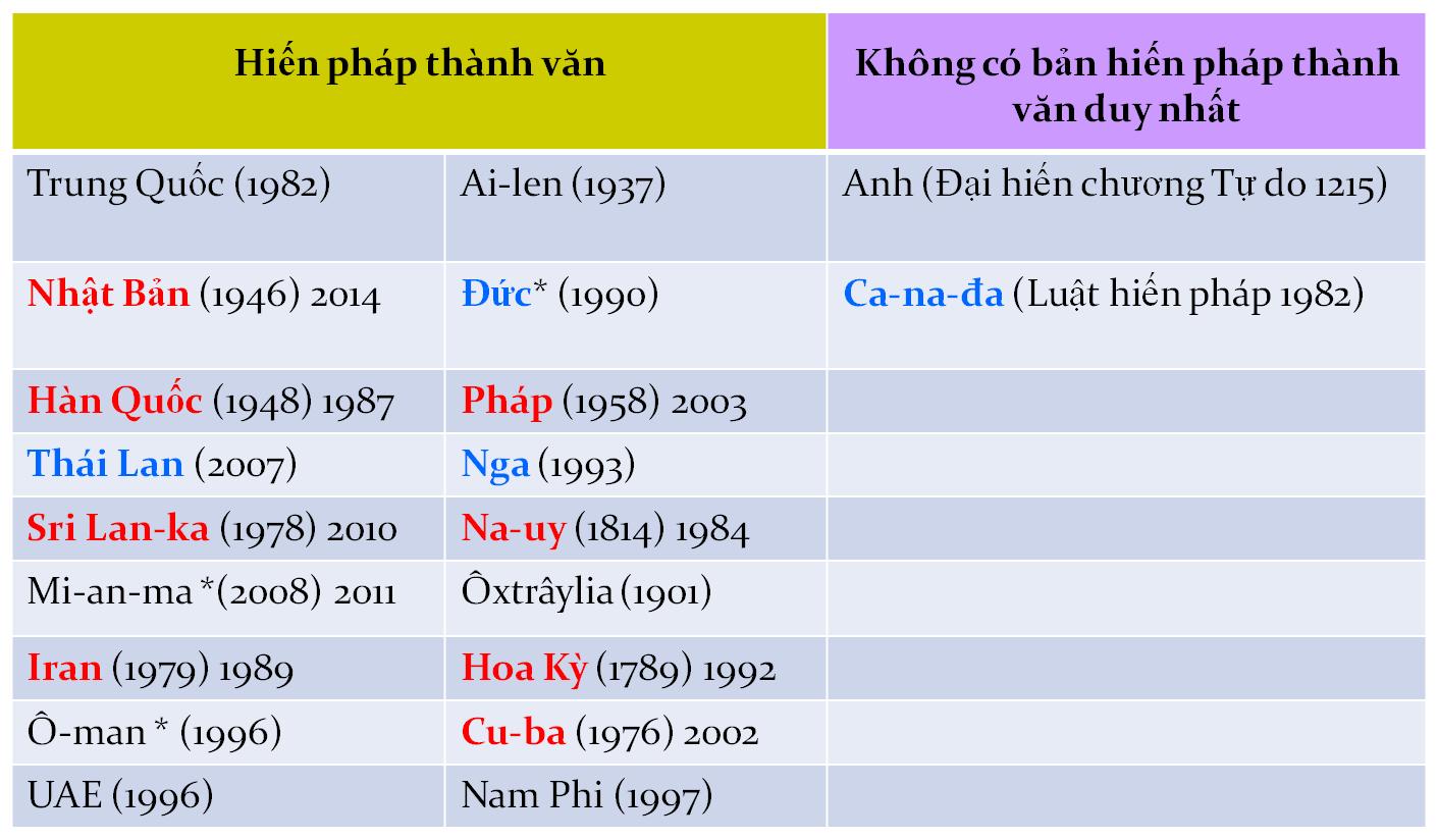 Hình 1: Bảng phân loại hiến pháp các quốc gia