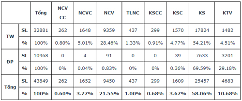 Theo kết quả điều tra, thống kê năm 2015 do Bộ Nội vụ tiến hành đối với 25 cơ quan Trung ương và 48 tỉnh, thành phố trực thuộc Trung ương trong cả nước (danh sách theo phụ lục kèm theo) thì tổng số viên chức khoa học và công nghệ (theo 08 chức danh nghề nghiệp) là 43.849, trong đó, khối các cơ quan Trung ương là 32.881 và các tỉnh, thành phố trực thuộc Trung ương là 10.968.