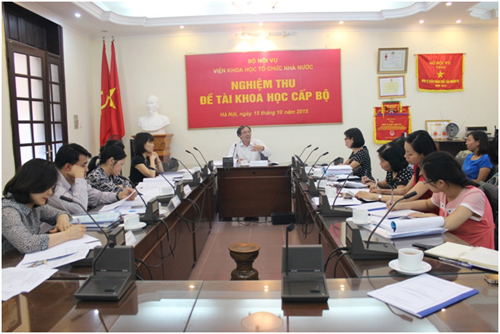 Ngày 15/10/2015, Viện Khoa học tổ chức nhà nước đã tổ chức nghiệm thu Đề tài khoa học cấp Bộ “Cơ sở khoa học quản lý tài liệu lưu trữ chuyên môn, nghiệp vụ từ thực tiễn quản lý tư liệu lưu trữ ngành khí tượng thủy văn" (Đề tài) do ThS. Nguyễn Anh Thư, Chuyên viên phòng Nghiệp vụ Văn thư – Lưu trữ Trung ương, Cục Văn thư và Lưu trữ Nhà nước làm chủ nhiệm.