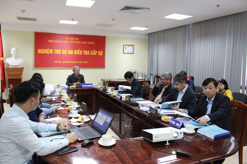 Ngày 20/12/2019, tại trụ sở Bộ Nội vụ, Viện Khoa học tổ chức nhà nước đã tổ chức nghiệm thu Dự án: “Điều tra, đánh giá thực trạng và đề xuất giải pháp đẩy mạnh xã hội hóa dịch vụ sự nghiệp công” do Viện Khoa học tổ chức nhà nước là đơn vị chủ trì.