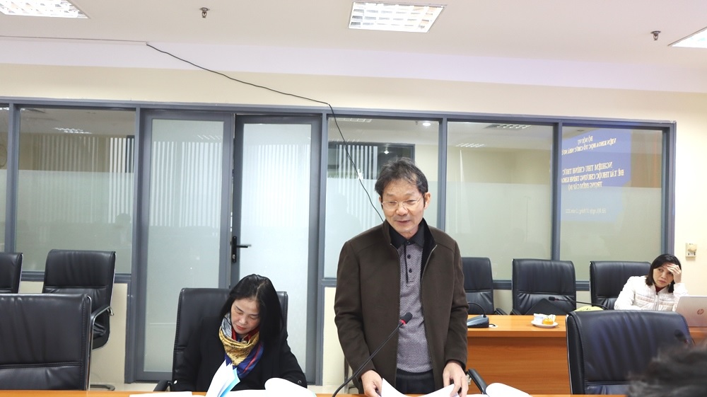 Phát biểu kết luận buổi nghiệm thu, trên cơ sở thống nhất ý kiến của các thành viên Hội đồng PGS.TS. Văn Tất Thu, Chủ tịch Hội đồng đánh giá cao sự cố gắng của Nhóm nghiên cứu, cho rằng đây là công trình nghiên cứu khoa học được thực hiện công phu, nghiêm túc, hoàn thành tốt, mục tiêu và các nhiệm vụ nghiên cứu đề ra. Đề tài đã bảo đảm được độ sẵn rằng cần thiết để cung cấp cho các cơ quan có thẩm quyền tham khảo trong quá trình xây dựng và thực thi chính sách nhằm nâng cao hiệu lực, hiệu quả hoạt động của bộ máy nhà nước ở Việt Nam nói chung và tổ chức bộ máy hành chính nhà nước nói riêng trong thời gian tới. Tuy nhiên, Nhóm nghiên cứu cần phải tiếp thu các ý kiến góp ý của Hội đồng nghiệm thu để bổ sung hoàn thiện các nội dung của Đề tài.