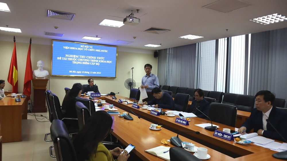 Ngày 10/12/2022, tại trụ sở Bộ Nội vụ, Viện Khoa học tổ chức nhà nước đã tổ chức nghiệm thu chính thức đề tài “Cơ sở lý luận về tổ chức, hoạt động của bộ máy hành chính nhà nước” thuộc chương trình khoa học trọng điểm cấp Bộ do TS. Nguyễn Ngọc Vân làm chủ nhiệm, Viện Khoa học tổ chức nhà nước là đơn vị tổ chức chủ trì.