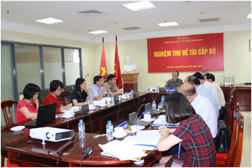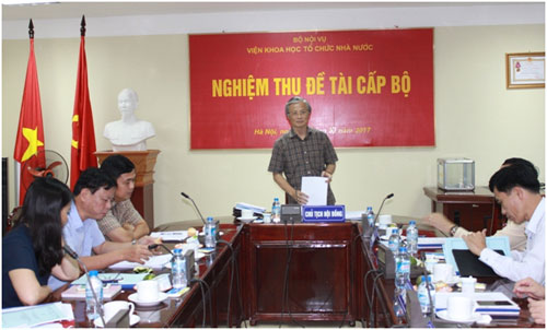 Ngày 09/10/2017, Viện Khoa học tổ chức nhà nước đã tổ chức buổi nghiệm thu Đề tài khoa học cấp Bộ: “Nâng cao chất lượng công tác khen thưởng cho người lao động trực tiếp ở nước ta hiện nay” do ThS. Phạm Thu Thủy, chuyên viên Ban Thi đua - Khen thưởng Trung ương làm Chủ nhiệm.
