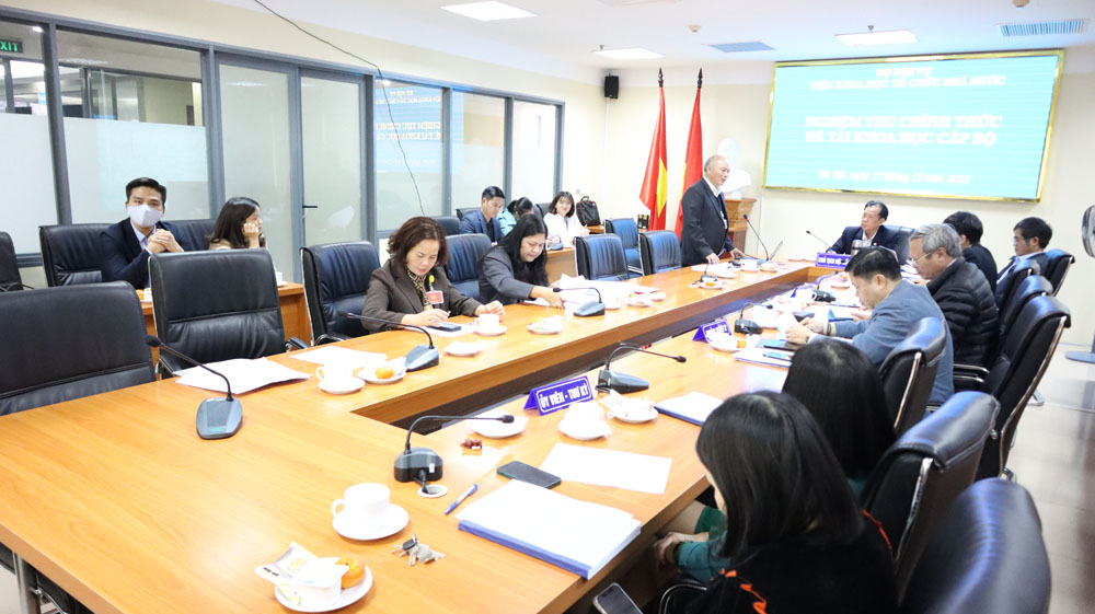 Chiều ngày 27/12/2022, tại trụ sở Bộ Nội vụ, Viện Khoa học tổ chức nhà nước đã tổ chức nghiệm thu chính thức đề tài: "Xây dựng cơ sở dữ liệu tích hợp ngành nội vụ phục vụ chỉ đạo, điều hành của Lãnh đạo Bộ Nội vụ" do TS. Vũ Đăng Minh, Chánh Văn phòng Bộ Nội vụ làm chủ nhiệm.