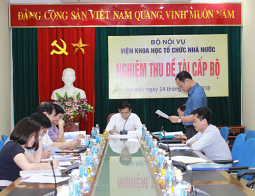 Ngày 25/4/2018, tại trụ sở Bộ Nội vụ, Viện Khoa học tổ chức nhà nước đã tổ chức nghiệm thu chính thức đề tài cấp Bộ “Cơ sở khoa học xác định chức năng, nhiệm vụ, quyền hạn của chính quyền xã đáp ứng yêu cầu đẩy mạnh phân cấp quản lý nhà nước” do ThS. Nguyễn Ánh Dương, Chuyên viên chính Vụ Chính quyền địa phương, Bộ Nội vụ làm chủ nhiệm. PGS. TS. Văn Tất Thu, Nguyên Thứ trưởng Bộ Nội vụ làm Chủ tịch Hội đồng đánh giá (Hội đồng).