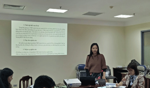 Tại buổi nghiệm thu, TS. Trần Thị Ngân Hà, Phó Trưởng khoa Tổ chức và Quản lý nhân lực, Trường Đại học Nội vụ Hà Nội, chủ nhiệm Đề tài đã thay mặt nhóm nghiên cứu trình bày tóm tắt kết quả nghiên cứu của Đề tài. Trong bối cảnh hội nhập và sự cạnh tranh gay gắt trong lĩnh vực giáo dục và đào tạo, để đáp ứng yêu cầu đổi mới căn bản, toàn diện nền giáo dục Việt Nam, hơn lúc nào hết đòi hỏi các trường Đại học phải chủ động sáng tạo trong dạy và học, không ngừng nghiên cứu, tìm kiếm mọi biện pháp nâng cao chất lượng đào tạo đáp ứng yêu cầu xã hội, khẳng định vị thế thương hiệu của mình. Ngoài đầu tư cơ sở vật chất, đội ngũ cán bộ, giảng viên cần quan tâm đổi mới và hoàn thiện chương trình đào tạo là yêu cầu cấp bách có tính thời sự mang ý nghĩa thực tiễn ko chỉ hiện tại mà còn có ý nghĩa lâu dài, giúp thu hút người học, tạo ra sự chú ý của nhà tuyển dụng, quảng bá thương hiệu, hình ảnh của nhà trường trước xã hội, khẳng định vị thế của mình. Khoa Quản lý nhân lực thuộc Trường Đại học Nội vụ từ khi thành lập đến nay không ngừng tìm tòi, học hỏi, cập nhật, đánh giá, điều chỉnh và hoàn thiện chương trình đào tạo ngành Quản trị nhân lực. Từ những phân tích đánh giá thực trạng của chương trình đào tạo hiện nay, đề tài đã đưa ra được 5 giải pháp hoàn thiện Chương trình đào tạo trình độ đại học ngành Quản trị nhân lực mang ý nghĩa thực tiễn cao, có thể áp dụng ngay, góp phần vào việc xây dựng chương trình đào tạo chung của nhà trường nhằm đáp ứng nhu cầu sử dụng lao động ở nước ta hiện nay.