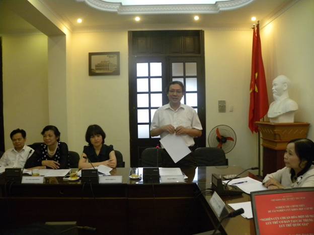 Nhận xét đánh giá về kết quả nghiên cứu của Đề tài, Ông Hoàng Quốc Tuấn - Cục trưởng Cục Lưu trữ, Văn phòng Trung ương Đảng – phản biện 1, cho rằng bố cục 3 chương của Đề tài tương đối hợp lý. Đề tài đã trình bày được khái quát cơ sở lý luận, cơ sở pháp lý và cơ sở thực tiễn cho việc chuẩn hóa các nghiệp vụ lưu trữ cơ bản của 4 Trung tâm Lưu trữ quốc gia. Đề tài cũng đã mô tả thực trạng thực hiện các khâu nghiệp vụ lưu trữ cơ bản tại các Trung tâm Lưu trữ quốc gia cũng như đã nêu lên được một số hạn chế về công tác thu thập, chỉnh lý và xác định giá trị tài liệu, về công tác thống kê, xây dựng công cụ tra cứu và công tác bảo quản tài liệu… Ngoài ra Đề tài cũng đã đề xuất được 6 giải pháp chuẩn hóa nghiệp vụ lưu trữ cơ bản tại các Trung tâm này. Bên cạnh những kết quả đạt được, Đề tài còn một số hạn chế cần khắc phục như: nội dung báo cáo tổng hợp chưa phù hợp với tên đề tài; Đề tài đã giới thiệu được các cơ sở lý luận, các văn bản pháp lý, kết quả khảo sát thực tiễn thực hiện các nghiệp vụ lưu trữ cơ bản, nhưng chưa có sự so sánh, phân tích, đánh giá cụ thể về sự phù hợp giữa lý luận, quy định pháp lý và thực tiễn hoạt động nghiệp vụ của cả 4 trung tâm; trong giải pháp hoàn thiện hệ thống văn bản nghiệp vụ lưu trữ cần làm rõ nội dung chuẩn hóa chứ không nên chỉ dừng ở chỗ nêu ra các vấn đề cần chuẩn hóa; mặt khác nguồn tư liệu tham khảo nước ngoài cũng còn rất hạn chế.