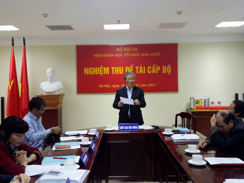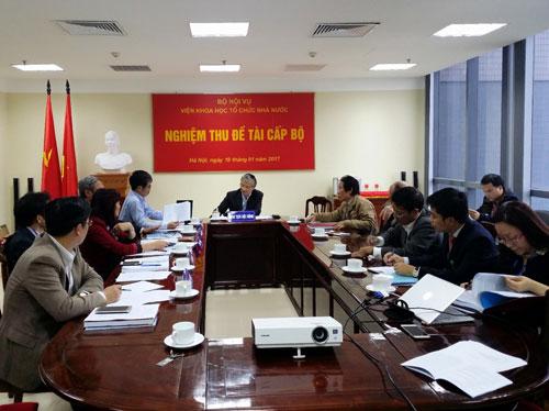 Ngày 19/01/2017, Viện Khoa học tổ chức nhà nước đã tổ chức buổi nghiệm thu Đề tài khoa học cấp Bộ: “Nghiên cứu kinh nghiệm quản lý đội ngũ viên chức nhà nước trong lĩnh vực dịch vụ công (giáo dục, y tế khoa học và công nghệ) của một số nước trên thế giới” (Đề tài) do ThS. Trần Lưu Trung, Quyền Vụ trưởng Vụ Hợp tác quốc tế làm Chủ nhiệm.