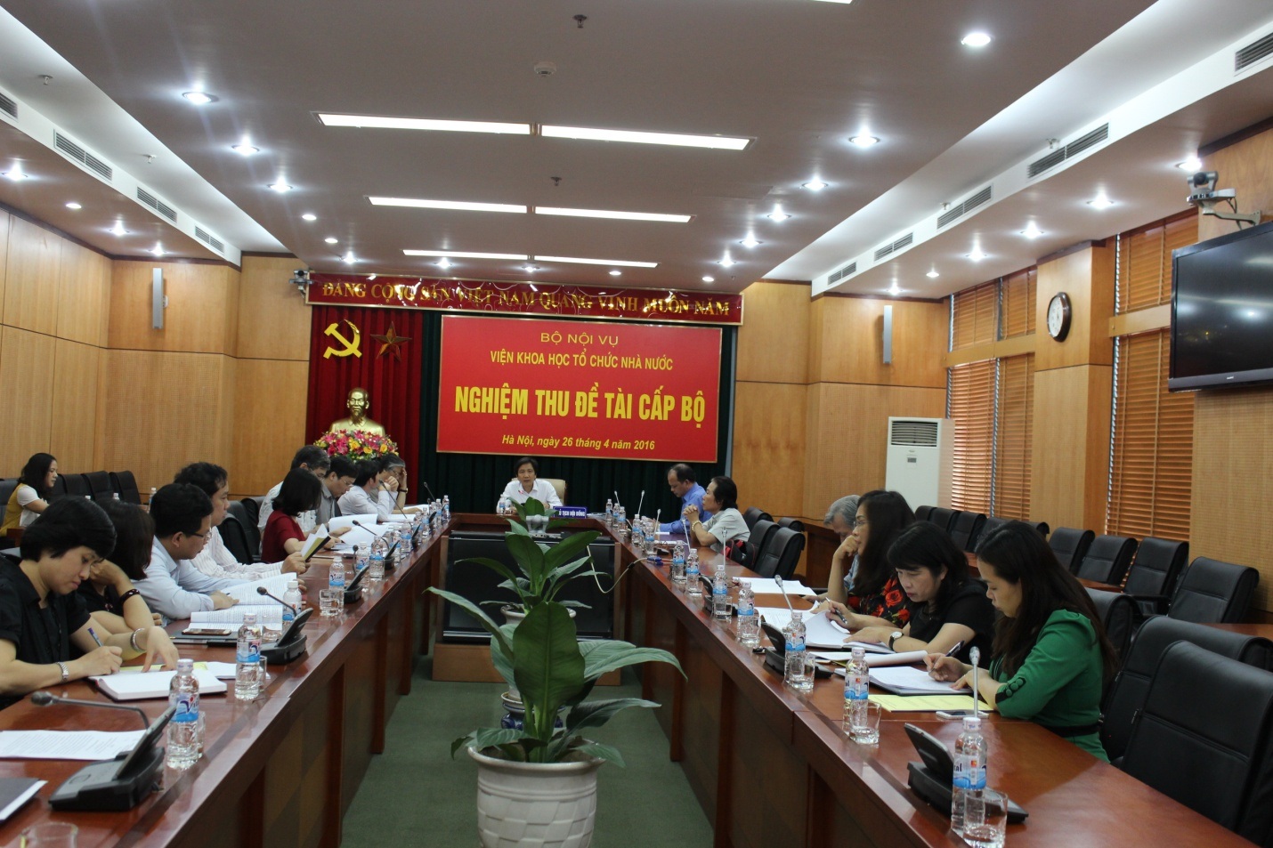 Ngày 26/4/2016, Bộ Nội vụ đã tổ chức nghiệm thu đề tài khoa học cấp Bộ “Phương pháp xác định vị trí việc làm (VTVL) trong các cơ quan hành chính nhà nước” (Đề tài) do TS. Tạ Ngọc Hải, Phó Viện trưởng Viện Khoa học tổ chức nhà nước làm chủ nhiệm.