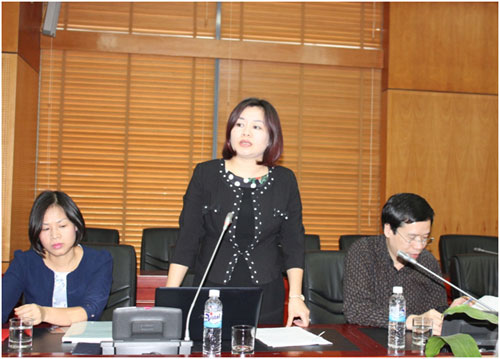 ThS. Tô Thị Linh, Thư ký Đề tài trình bày tóm tắt kết quả nghiên cứu Đề tài