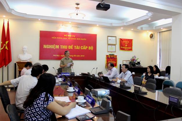 Ngày 07/6/2016, tại Hà Nội, Viện Khoa học tổ chức nhà nước đã tổ chức buổi nghiệm thu chính thức Đề tài nghiên cứu khoa học cấp Bộ “Kiện toàn cơ cấu tổ chức bộ máy của Bộ Nội vụ trong điều kiện tổ chức Bộ quản lý đa ngành đa lĩnh vực” do PGS. TS. Nguyễn Hữu Hải, Trưởng khoa Khoa Hành chính học, Học viện Hành chính Quốc gia làm chủ nhiệm.