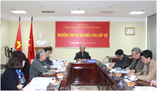 Ngày 10/01/2018, tại trụ sở Bộ Nội vụ, Viện Khoa học tổ chức nhà nước đã tổ chức nghiệm thu Dự án: “Điều tra đánh giá thực trạng và đề xuất giải pháp hoàn thiện phân cấp quản lý nhà nước giữa Trung ương và địa phương” (Dự án) do TS. Trần Văn Ngợi, Viện trưởng Viện Khoa học tổ chức nhà nước làm Chủ nhiệm.