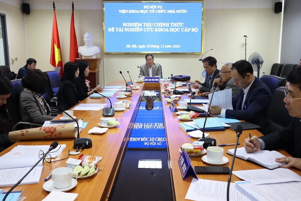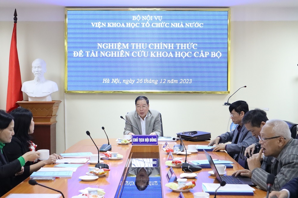 Ngày 26/12/2023, tại trụ sở Bộ Nội vụ, Viện Khoa học tổ chức nhà nước đã tổ chức nghiệm thu chính thức đề tài khoa học cấp Bộ “Cơ sở khoa học xác định địa vị pháp lý của chính quyền địa phương ở Việt Nam hiện nay” do TS. Hoàng Thị Giang, Giảng viên Khoa Lưu trữ học và Quản trị văn phòng, Học viện Hành chính Quốc gia làm chủ nhiệm, Học viện Hành chính Quốc gia là tổ chức chủ trì.