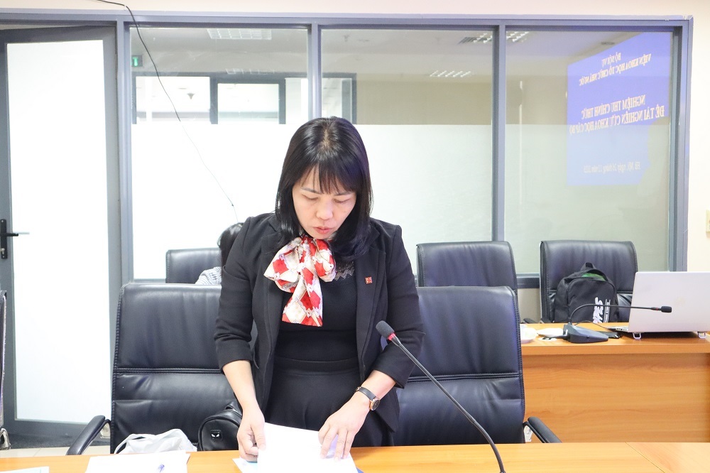 TS. Hoàng Thị Giang, Giảng viên Khoa Lưu trữ học và Quản trị văn phòng, Học viện Hành chính Quốc gia thay mặt Nhóm nghiên cứu báo cáo tóm tắt kết quả nghiên cứu của Đề tài