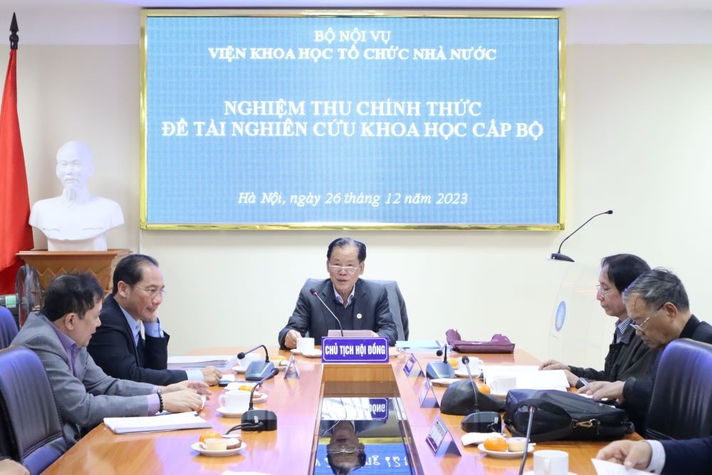 Ngày 26/12/2023, tại trụ sở Bộ Nội vụ, Viện Khoa học tổ chức nhà nước đã tổ chức nghiệm thu chính thức đề tài khoa học cấp Bộ “Phương thức hoạt động của bộ máy hành chính nhà nước Việt Nam - Những vấn đề lý luận và thực tiễn” do TS. Lê Anh Tuấn, Viện trưởng Viện Khoa học tổ chức nhà nước làm chủ nhiệm, Viện Khoa học tổ chức nhà nước là tổ chức chủ trì.