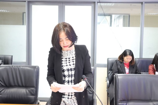 ThS. Nguyễn Thị Thu Huyền, thay mặt Nhóm nghiên cứu trình bày tóm tắt kết quả nghiên cứu Đề tài.