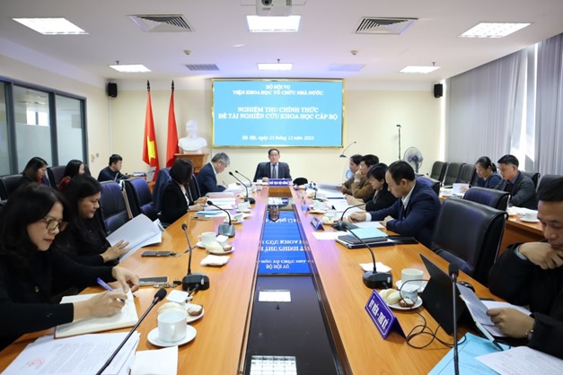 Ngày 25/12/2023, tại trụ sở Bộ Nội vụ, Viện Khoa học tổ chức nhà nước đã tổ chức nghiệm thu chính thức đề tài khoa học cấp Bộ “Thiết chế Hội đồng nhân dân trong cấu trúc bộ máy nhà nước Việt Nam” do ThS. Nguyễn Thị Thu Huyền, Trưởng phòng, Phòng Quản lý Khoa học, Viện Khoa học tổ chức nhà nước, Bộ Nội vụ làm chủ nhiệm.