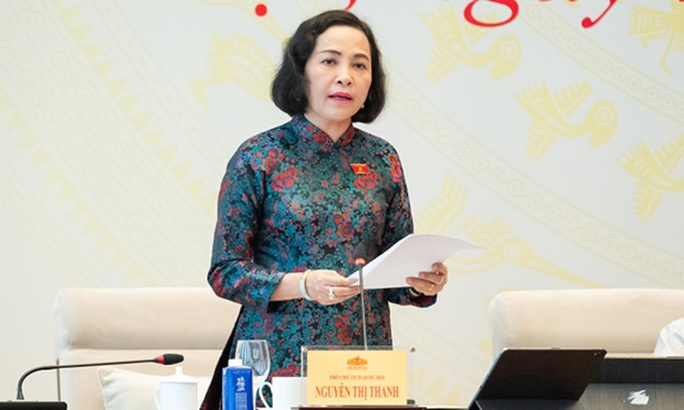 Phó chủ tịch Quốc hội Nguyễn Thị Thanh phát biểu chiều 25/3. Ảnh: Media Quốc hội