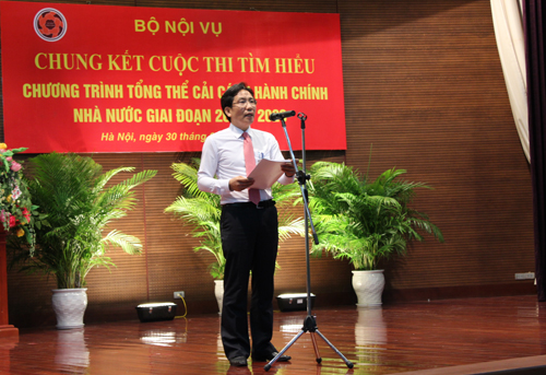 Tại Cuộc thi, đồng chí Nguyễn Quốc Khánh, Vụ trưởng Vụ Tổ chức Cán bộ, Phó Trưởng ban Tổ chức Cuộc thi đã công bố các Quyết định về việc thành lập Ban Tổ chức Cuộc thi, thành lập Ban Giám khảo, Tổ thư ký Cuộc thi tìm hiểu Chương trình tổng thể cải cách hành chính nhà nước giai đoạn 2011 – 2020 vòng chung kết cấp Bộ.