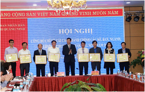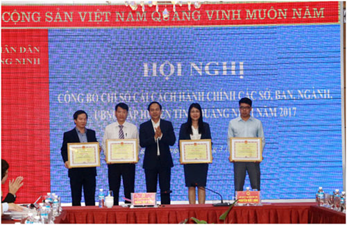 Trên cơ sở thang điểm đánh giá, kết quả Chỉ số CCHC của các sở, ban, ngành đều đạt trên 82 điểm (điểm trung bình các sở, ban, ngành là 85,69 điểm) tăng 5,15 điểm so với năm 2016; UBND cấp huyện đều đạt trên 81 điểm (điểm trung bình các huyện, thị xã, thành phố là 85,24 điểm) tăng 5,01 điểm so với năm 2016. Kết quả xếp loại chỉ số CCHC các sở, ban, ngành và UBND các huyện, thị xã, thành phố thuộc tỉnh năm 2017 đều xếp loại Tốt. Trong đó Sở Xây dựng đứng thứ nhất (89,92 điểm), Sở Y tế đứng thứ 2 (88,35 điểm), Sở Khoa học và Công nghệ đứng thứ 3 (88,29 điểm), Sở Tài chính đứng thứ 4 (87,94 điểm), Sở Nội vụ đứng thứ 5 (87,82 điểm). Đối với cấp địa phương, Hạ Long đứng thứ nhất (88,89 điểm), TP Cẩm Phả đứng thứ 2 (87,95 điểm), TX Đông Triều đứng thứ 3 (87,80 điểm); TP Uông Bí đứng thứ 4 (86,97 điểm), huyện Hải Hà đứng thứ 5 (86,90 điểm).