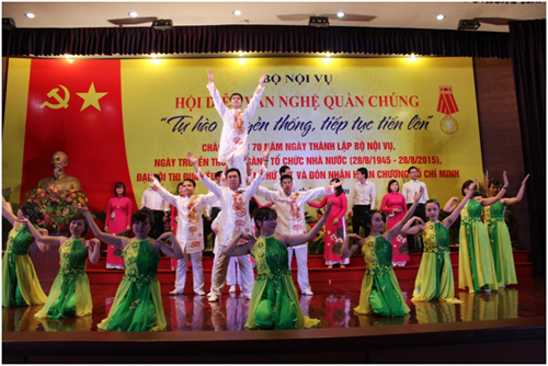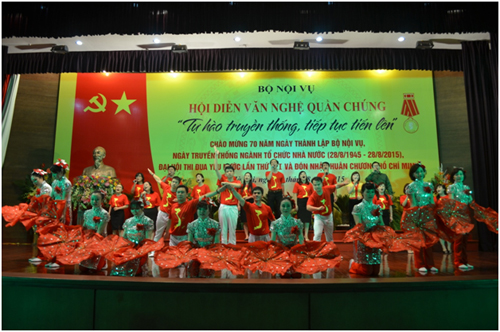 Trong không khí phấn khởi chào mừng 70 năm Cách mạng Tháng 8 thành công và Quốc khánh 2/9, chào mừng 70 năm ngày thành lập Bộ Nội vụ, ngày truyền thống ngành Tổ chức nhà nước (28/8/1945 – 28/8/2015), Đại hội thi đua yêu nước lần thứ III và đón nhận Huân chương Hồ Chí Minh, tối ngày 18/8/2015 tại trụ sở Bộ Nội vụ đã diễn ra Hội diễn văn nghệ quần chúng với chủ đề “Tự hào truyền thống, tiếp tục tiến lên” (Hội diễn), với 08 đội thi đến từ các đơn vị thuộc và trực thuộc Bộ (Cơ quan Bộ Nội vụ, Ban Thi đua - Khen thưởng Trung ương, Cục Văn thư Lưu trữ Nhà nước, Viện Khoa học tổ chức nhà nước, Học viện Hành chính Quốc gia, Đại học Nội vụ Hà Nội, Ban Tôn giáo Chính phủ và Trường Đào tạo bồi dưỡng cán bộ công chức).