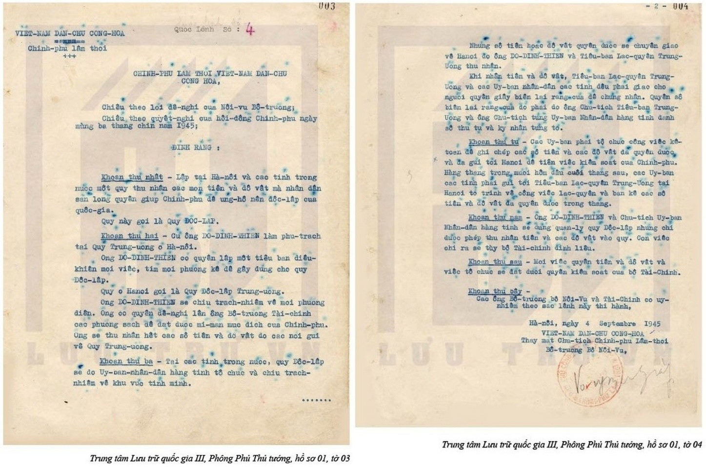 Sắc lệnh số 04-SL thành lập Quỹ Độc lập (Nguồn: Trung tâm Lưu trữ quốc gia III).