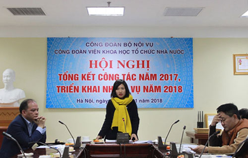Ngày 17/01/2018, Công đoàn Viện Khoa học tổ chức nhà nước đã tổ chức Hội nghị tổng kết công tác công đoàn năm 2017 và phương hướng, nhiệm vụ công tác năm 2018 (Hội nghị). TS. Trần Văn Ngợi, Bí thư Đảng ủy, Viện trưởng Viện Khoa học tổ chức nhà nước đã tới dự và chỉ đạo Hội nghị.
