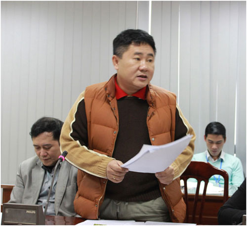 Đồng chí Hồ Trần Sỹ, Phó Chủ tịch Công đoàn Viện trình bày dự thảo Báo cáo tổng kết