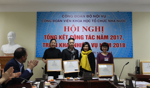 Với những thành tích đã đạt được trong năm 2017, Công đoàn Viện đã được Công đoàn Viên chức Việt Nam tặng Bằng khen về chuyên đề văn hóa thể thao và 01 cá nhân được tặng bằng khen “Đã có thành tích xuất sắc trong phong trào thi đua xây dựng cơ quan và tổ chức Công đoàn vững mạnh năm 2017”; Công đoàn Bộ Nội vụ khen thưởng toàn diện và khen thưởng chuyên đề cho 03 tổ công đoàn và 06 cá nhân.