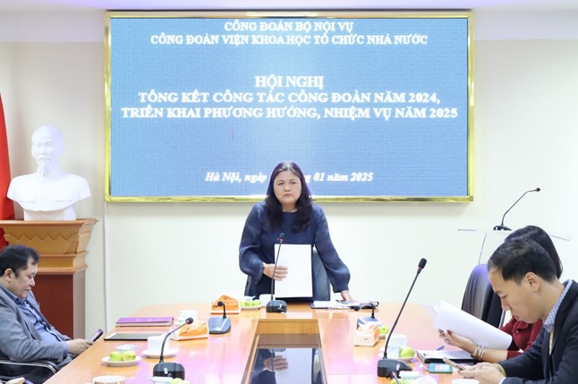 Ngày 23/01/2025, Công đoàn Viện Khoa học tổ chức nhà nước đã long trọng tổ chức “Hội nghị tổng kết công tác Công đoàn năm 2024 và phương hướng, nhiệm vụ công tác năm 2025” (Hội nghị). Tham dự Hội nghị có đồng chí Lê Anh Tuấn - Bí thư Đảng ủy, Viện trưởng Viện Khoa học tổ chức nhà nước (KHTCNN); đồng chí Vũ Xuân Thanh, Phó Viện trưởng Viện KHTCNN và toàn thể đoàn viên công đoàn Viện. Đồng chí Nguyễn Huyền Hạnh - Phó Bí thư Đảng ủy, Phó Viện trưởng, Chủ tịch Công đoàn Viện KHTCNN chủ trì Hội nghị.