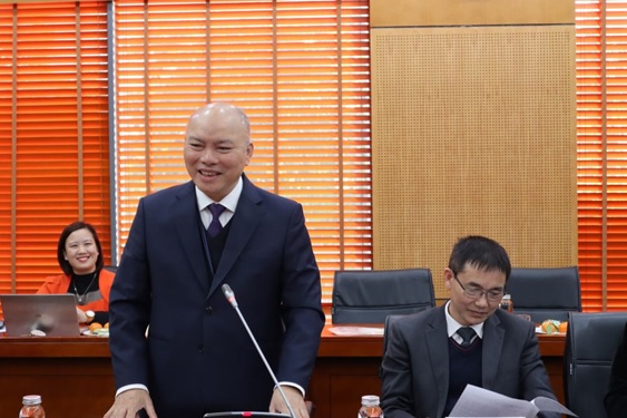 Phó Viện trưởng Viện Khoa học tổ chức nhà nước Vũ Xuân Thanh trình bày Dự thảo Báo cáo Tổng kết công tác năm 2023 và phương hướng, nhiệm vụ công tác năm 2024