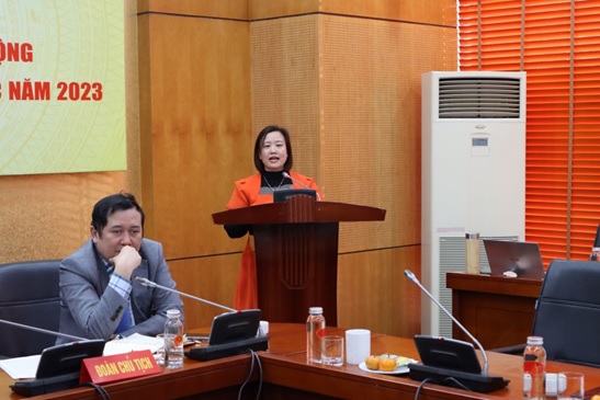Chánh Văn phòng Viện Trần Thị Vân trình bày Báo cáo thực hiện Quy chế dân chủ năm 2023