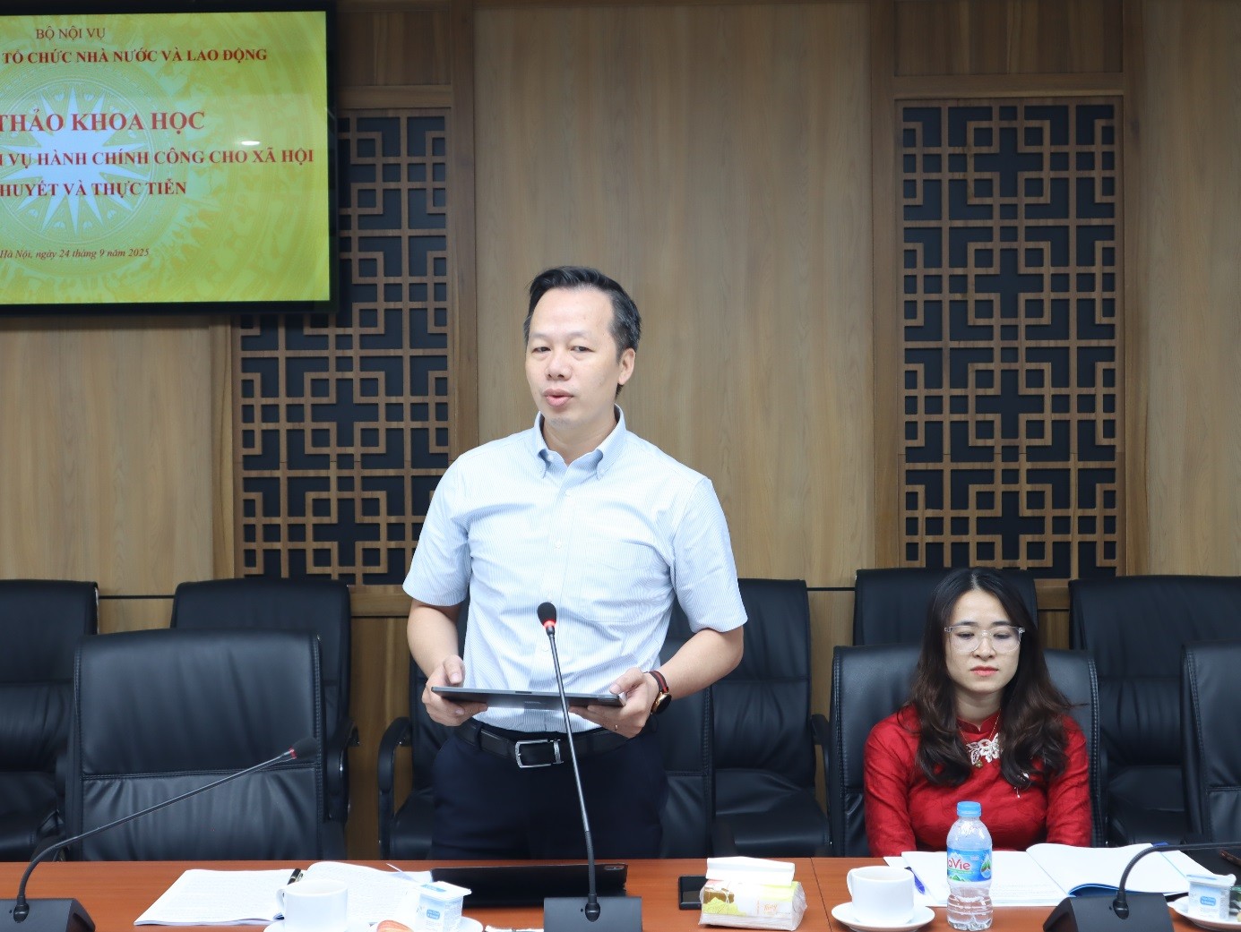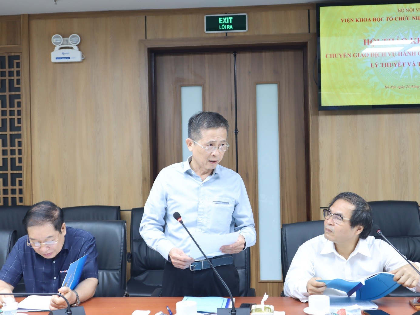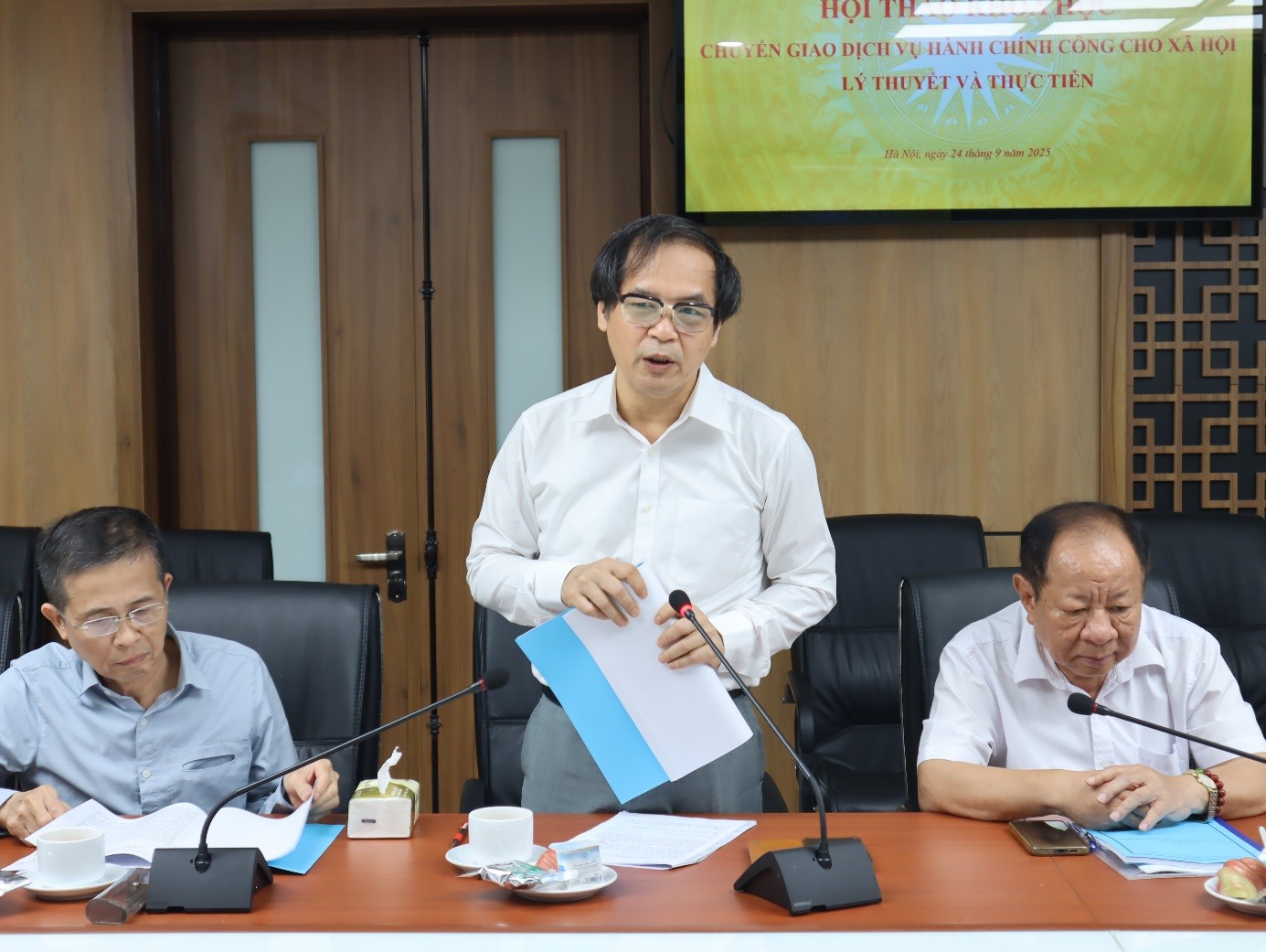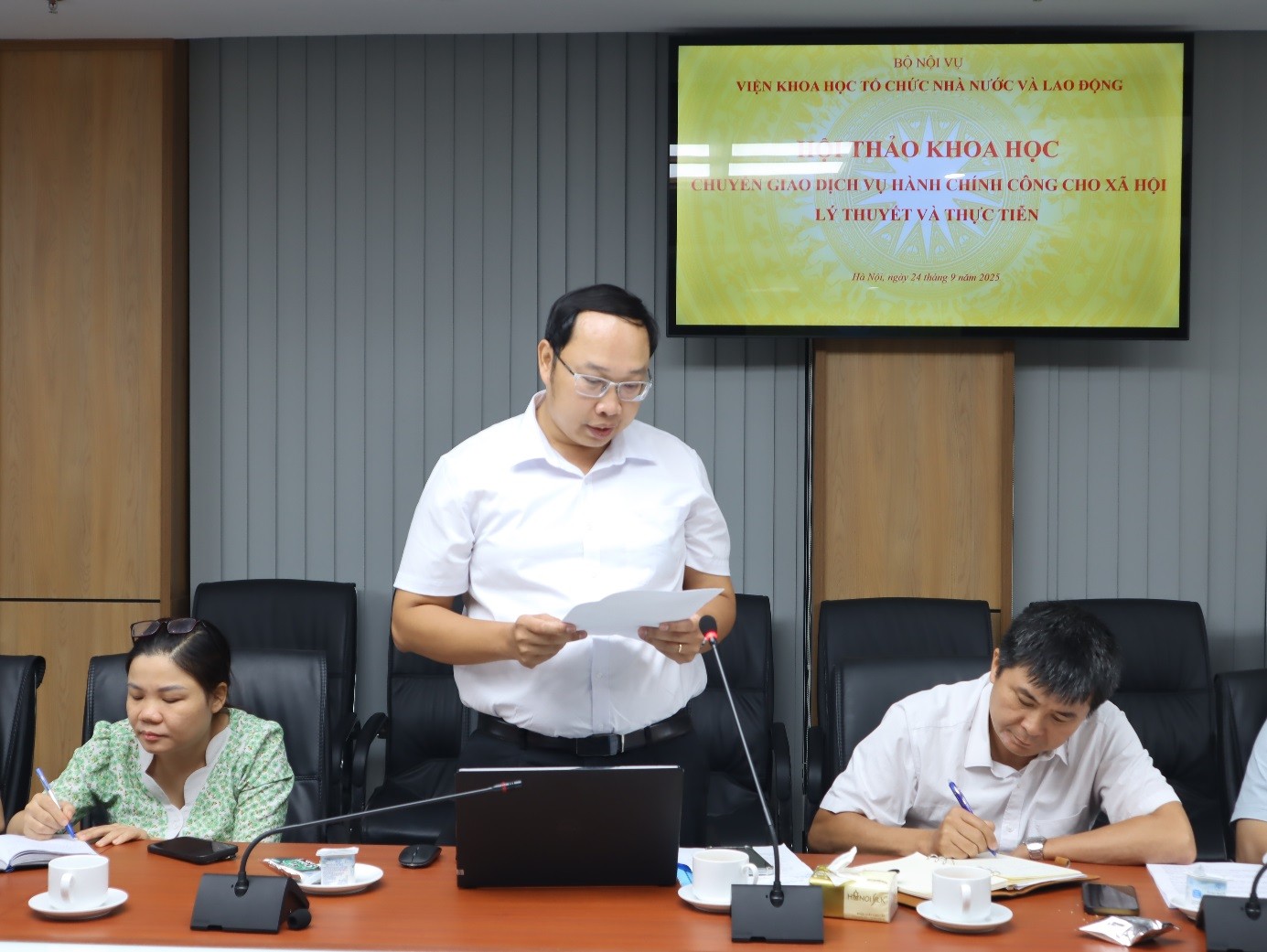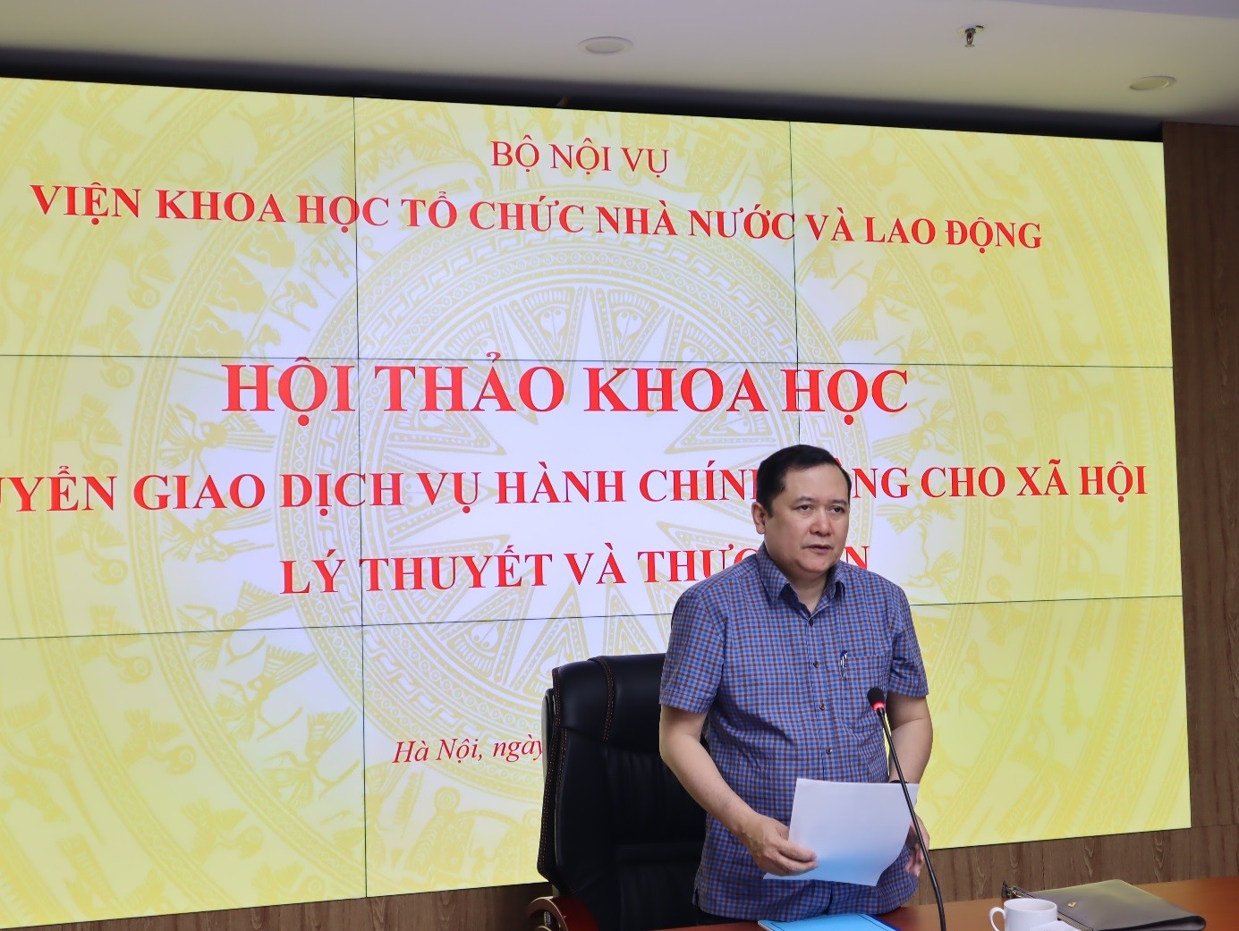 Phát biểu khai mạc Hội thảo, TS. Lê Anh Tuấn, Viện trưởng Viện Khoa học Tổ chức nhà nước và Lao động nhấn mạnh, việc chuyển giao một số nhiệm vụ, dịch vụ hành chính công từ Nhà nước sang xã hội là xu hướng tất yếu trên thế giới, phù hợp với bối cảnh hội nhập và yêu cầu cải cách hành chính. Thực tiễn nhiều quốc gia cho thấy, mô hình này giúp huy động nguồn lực xã hội, nâng cao chất lượng phục vụ, khuyến khích đổi mới sáng tạo, đồng thời tinh gọn bộ máy, tăng hiệu lực, hiệu quả quản lý. Tại Việt Nam, quan điểm nhất quán của Đảng và Nhà nước trong tiến trình đổi mới là Nhà nước chỉ làm những việc xã hội không làm hoặc xã hội không thể làm và chuyển giao những nhiệm vụ mà Nhà nước không nên làm hoặc làm hiệu quả thấp cho các tổ chức xã hội, tổ chức phi chính phủ đảm nhận, giảm bớt đầu mối trung gian. Chương trình tổng thể cải cách hành chính nhà nước giai đoạn 2021-2030 cùng Kết luận số 50-KL/TW ngày 28/2/2023 của Bộ Chính trị về tiếp tục thực hiện Nghị quyết số 18 - NQ/TW ngày 25/10/2017 của Ban Chấp hành Trung ương Đảng Khóa XII “Một số vấn đề về tiếp tục đổi mới, sắp xếp tổ chức bộ máy của hệ thống chính trị tinh gọn, hoạt động hiệu lực, hiệu quả" đã nêu rõ việc “kiên quyết chuyển cho doanh nghiệp, các tổ chức xã hội đảm nhiệm những nhiệm vụ và dịch vụ hành chính công mà Nhà nước không nhất thiết phải thực hiện”.