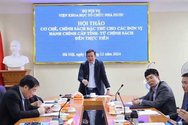 Phát biểu khai mạc Hội thảo, TS. Lê Anh Tuấn, Viện trưởng Viện Khoa học tổ chức nhà nước cho biết, mục đích của Hội thảo nhằm trao đổi, thảo luận và tiếp thu ý kiến của các chuyên gia, nhà khoa học về kết quả thực hiện, chính sách đặc thù cho đơn vị hành chính cấp tỉnh trong thời gian qua, chỉ ra những kết quả đạt được, những hạn chế còn tồn tại, nguyên nhân khách quan và chủ quan của những ưu điểm, hạn chế. Trên cơ sở đó, sẽ đưa ra các khuyến nghị về những vấn đề, quy định cần điều chỉnh, bổ sung để những cơ chế, chính sách trao cho các địa phương phát huy hiệu quả cao nhất trong giai đoạn thí điểm. Đồng thời, cũng hướng tới tìm kiếm các giải pháp hoàn thiện các quy định về phân quyền, phân cấp giữa Trung ương và địa phương ở Việt Nam trong thời gian tới.