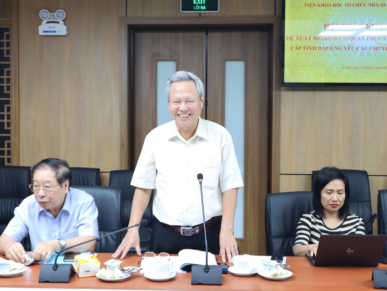 Phát biểu tại Hội thảo, PGS.TS. Lê Minh Thông đã đưa ra một số quan điểm và đề xuất mô hình cơ quan phục vụ hành chính công cấp tỉnh đáp ứng yêu cầu chuyển đổi số hiện nay. Để xây dựng mô hình cơ quan phục vụ hành chính công trong môi trường mới cần quán triệt các quan điểm sau: (1) Tái cấu trúc tổ chức cơ quan phục vụ hành chính công ở cấp tỉnh theo hướng chuyên môn hóa, liên thông và hiện đại; (2) Phân cấp mạnh đi đôi với tăng cường năng lực hỗ trợ, giám sát từ cấp tỉnh; (3) Lấy người dân là trung tâm, đảm bảo tiếp cận công bằng và thuận tiện; (4) Quản trị theo dữ liệu số và điều hành thông minh; (5) Tổ chức nhân sự tinh gọn, hiệu năng cao, tích hợp đa ngành; (6) Kết hợp công – tư trong cung ứng dịch vụ công; (7) Đồng bộ hóa pháp lý, tổ chức và tài chính. Điểm qua kinh nghiệm của một số quốc gia tiêu biểu như Nhật Bản, Pháp, Hàn Quốc, Đức có thể rút ra 3 bài học lớn cho Việt Nam: (1) Thiết kế tổ chức theo mô hình trung tâm hành chính tích hợp – liên thông – đa nhiệm vụ, tránh phân tán manh mún, tăng hiệu suất phục vụ và tính minh bạch; (2) Đặt công nghệ số và dữ liệu công làm nền tảng cốt lõi để vận hành hành chính công hiện đại, từ đó chuyển từ hành chính phản ứng sang hành chính chủ động; (3) Gắn hành chính công với trách nhiệm chính trị - pháp lý – đạo đức của cán bộ, đặc biệt là người đứng đầu, thúc đẩy kỷ luật công vụ, đổi mới phục vụ vì dân.
