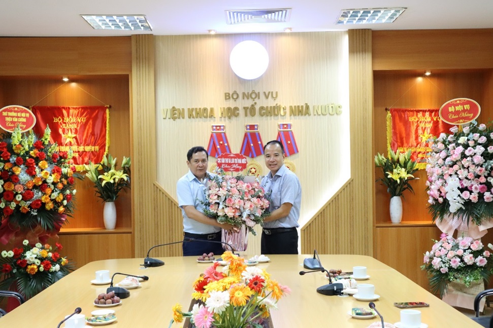 Thứ trưởng Bộ Nội vụ Triệu Văn Cường tặng hoa chúc mừng Viện Khoa học Tổ chức nhà nước