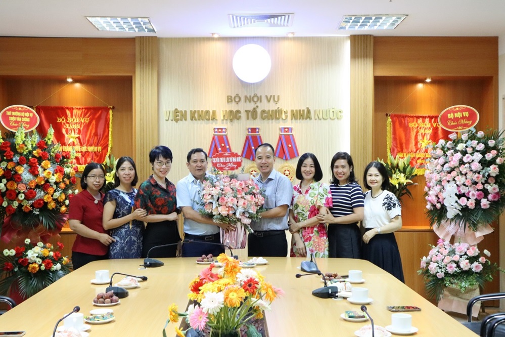 Thứ trưởng Bộ Nội vụ Nguyễn Trọng Thừa tặng hoa chúc mừng tập thể lãnh đạo Viện Khoa học Tổ chức nhà nước
