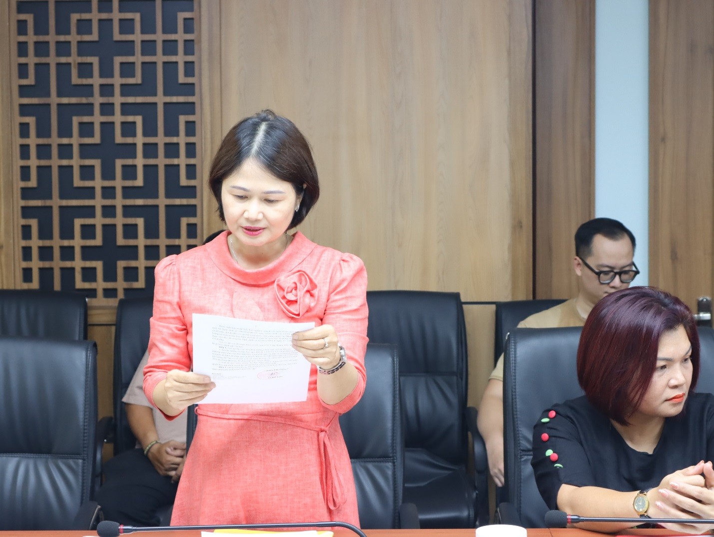 Bà Trần Thị Vân – Chánh Văn phòng Viện KHTCNN&LĐ công bố các Quyết định nghỉ hưu trước tuổi