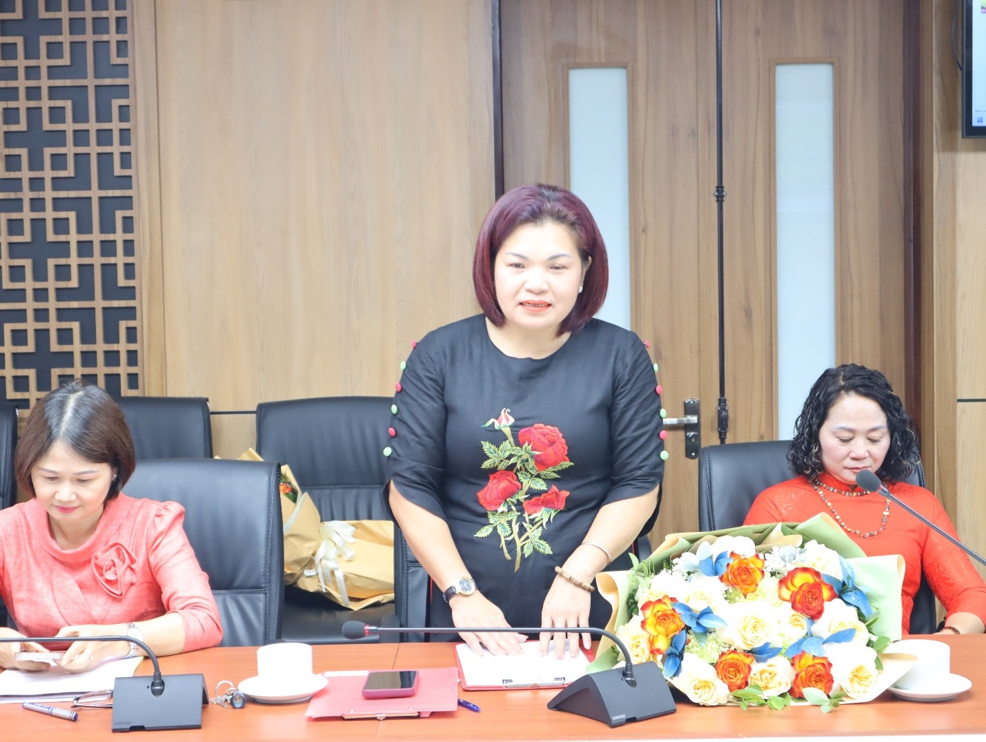 Bà Lưu Thị Lan Anh – Phó Chánh Văn phòng, Viện Khoa học Tổ chức nhà nước và Lao động phát biểu cảm tưởng tại buổi Lễ