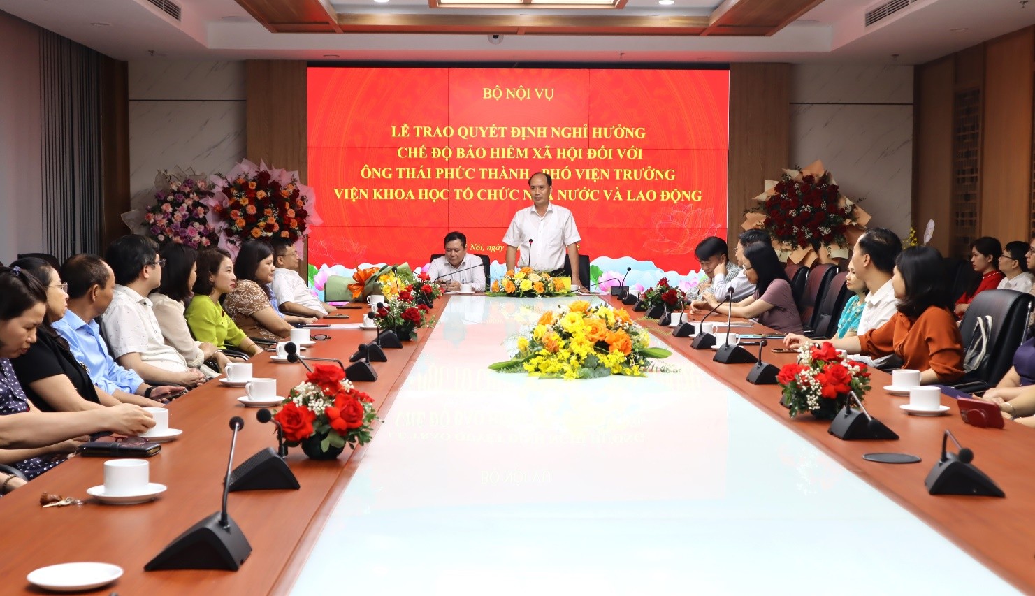 Chiều ngày 30/5/2025, Tại trụ sở Bộ Nội vụ, số 37 Nguyễn Bỉnh Khiêm, Hà Nội, Bộ Nội vụ đã long trọng tổ chức Lễ trao quyết định của Bộ trưởng Bộ Nội vụ về việc nghỉ hưởng hưu trước tuổi đối với ông Thái Phúc Thành, Phó Viện trưởng Viện Khoa học Tổ chức nhà nước và Lao động, Bộ Nội vụ.